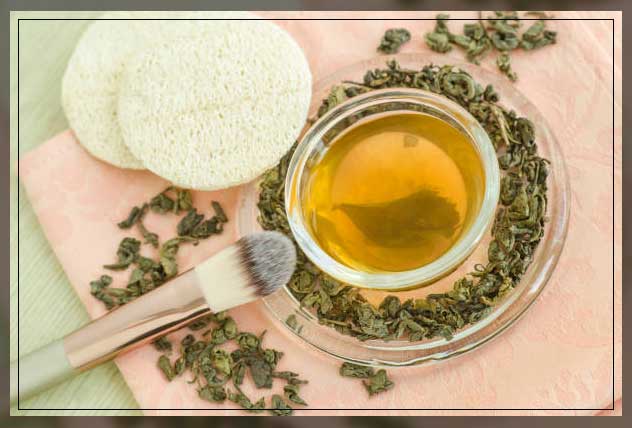Add green tea leaves to a cup of boiling water. Allow the leaves to steep for a few minutes and strain the liquid. To the tea liquid add a couple of drops of honey after it cools. Use a cotton ball to dab the tea on your face and leave it on for 10 minutes. Wash your face with water, and then apply a moisturizer. Repeat this remedy two times a week.